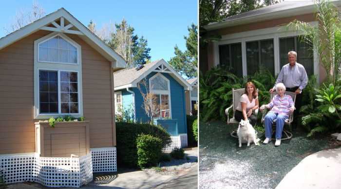 Выглядят эти домики довольно мило, а интерьер внутри — воплощение уюта и комфорта для людей, которым это так необходимо. А главное — дома родителей и детей расположены совсем близко, но при этом у каждого остается неприкосновенное личное пространство, что одинаково важно для всех. Проведывать друг друга можно несколько раз в день, а в резкой ситуации родные люди всегда окажутся рядом.